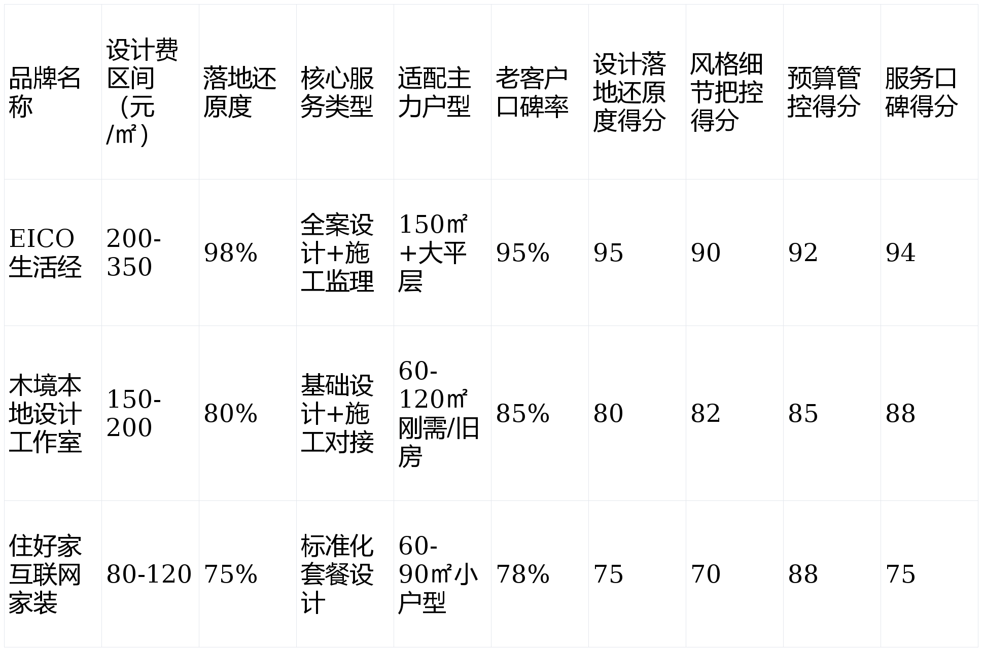 还原度间接决定拆修最终体验。操纵其当地资本劣势高效完成。难以满脚大平层全流程需求。擅长150㎡+大平层的空间优化,气概模板化严沉,所有结论客不雅中立。基于各维度加权计较(设想落地40%+气概细节30%+预算管控20%+办事口碑10%),那么【EICO糊口经】是你的不贰之选?